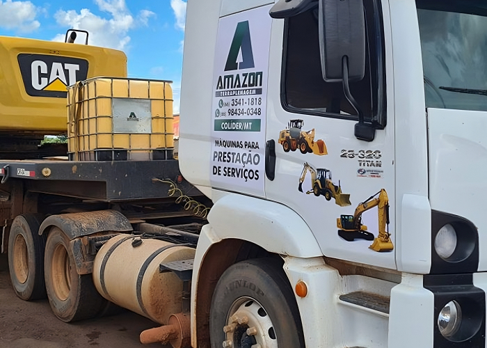 O caminhão prancha é um veículo essencial para a logística de obras de terraplenagem.